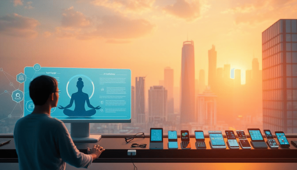 Mental health apps are also key. They help with stress, anxiety, and more. Apps like Calm and Headspace are known for helping people relax and focus.